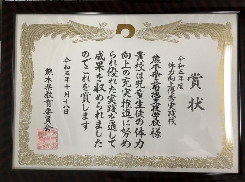 菊池支援学校が、令和5年度 「体力向上優秀実践校」に認定・表彰されました。