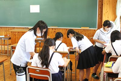 今年も7月22日、23日に菊高生による小学生への 学習支援を開催しました。 管内の小学校から6年生19人が菊池高校に来てくれました。 1日目は、開講式、記念撮影、自己紹介イベントと続き その後に学習会となりました。 2日目は、学習会の後、菊池高校の校内探索、閉講式が 行われました。 実は、菊池高校からは小学校や幼稚園・保育園の先生を 目指して毎年5~6名が進学しています。 今回もそんな未来の先生を目指す菊高生が先生役として 多く参加してくれました。 小学生の皆さん、菊高生の「お兄ちゃん・お姉ちゃん先生」は どうでしたか?是非、将来は皆さんが菊池高校に進学して 先生役として教えてくれることを楽しみにしています。