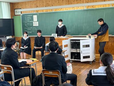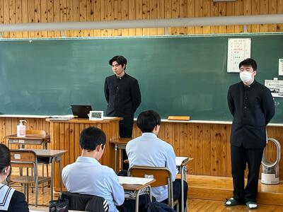 2月27日、卒業を目前に控えた3年生から2年生へ向けた「合格体験を聞く会」が実施されました。志望校合格、就職内定を勝ち取った3年生13人が各クラスを訪問する形式で行われました。それぞれが進路実現に向けて取り組んだこと、苦労したことなど、実際に体験したからこそ語ることができる厳しくも熱いメッセージは、きっと後輩たちに届いたはずです。