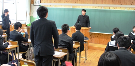 12月に入り、今年度の3年生の年内の就職試験も一段落しました。 しかし、ここで気を抜くわけにはいきません。 次年度に向けて12月19日、現時点での2年生の就職希望者を対象とした 第1回の就職希望者集会を行いました。 今年度は、本田技研熊本や肥後銀行などSPIという就職試験を実施する企業が 増えてきました。そこで、この冬休みは希望者を対象にSPIの特別学習会を 実施する予定です。