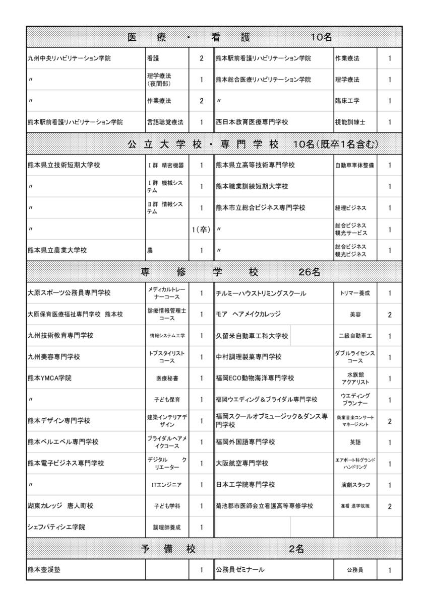 熊本電子ビジネス専門学校 シェフパティシエ学院 九州美容専門学校 等 延べ34名