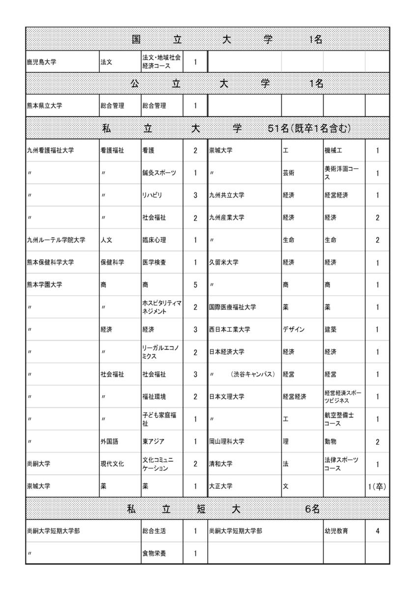 崇城大学 平成音楽大学 帝京大学 等 延べ18名