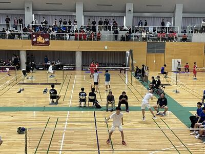 「バドミントン部」卒業生との送別試合を開催しました。 3月23日、本校体育館にて卒業生との送別試合を行いました。久しぶりにコートに戻ってきた卒業生たちとともに行った練習は、とても活気にあふれていました。 送別試合のメインイベントとして、1・2年生チーム対卒業生チームの団体戦を実施しました。これまでの交流試合や練習で体力を使い果たした卒業生チームに対し、現役チームが若さ(?)を武器に勝利しました。それでも、終始笑顔の絶えない和やかな雰囲気の中で試合を楽しむことができました。 卒業生の皆さん、それぞれの道へ進むことと思いますが、菊池高校バドミントン部で培った経験が皆さんの支えとなることを願っています。嬉しいことがあったときも、つらいことがあったときも、いつでもコートに帰ってきてください。皆さんのこれからの活躍を心より応援しています!