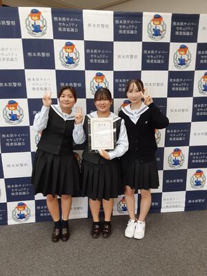 高校生サイバーセキュリティプレゼンコンペティションにおいては1分間の動画を作成し、優秀賞を受賞しており、熊本市内の大型街頭ビジョンにて放映中です。(3月31日まで)