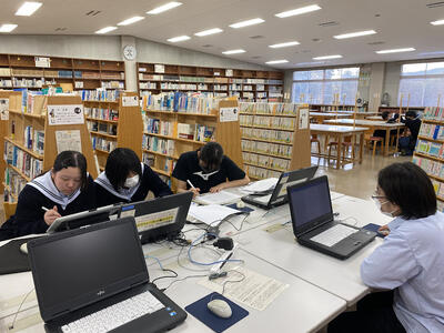 文芸部は、1年生6名・2年生3名・3年生2名で11月17日文化祭での文芸誌配布を目標に、主に図書館で活動しています。2学期になって1年生3名(男子2名と女子1名)が入部し、多様な創作活動を(時には顧問のアドバイスを受けながら)展開しています。