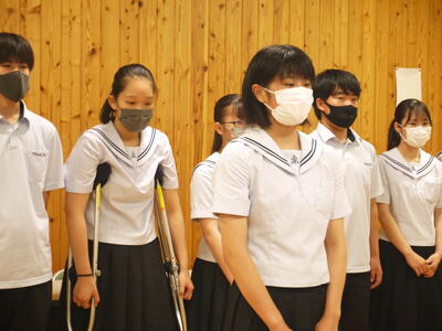 私は式辞の中で、「高校時代にこの未知なるウイルスという逆境を乗り越え、これまでの当たり前が当たり前ではなかったことや不自由さの中で感じることができた『ありがたさ』や『感謝の気持ち』などを実感することができた皆さんには前途洋々たる素晴らしい未来が待っていると確信している。」と述べました。