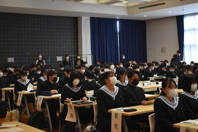 この2次募集でも1人でも多くの生徒が出願してくれればと思っています。現在の1年生の入学者が126人でしたので、できれば昨年を上回る入学者になればと願っています。新年早々の前期(特色)選抜の募集から始まった高校入試もいよいよ最終局面を迎えることとなりました。教頭先生、教務主任を中心に全職員で本当にきめ細かに業務に当たってもらい、大変なご苦労をお掛けしました。