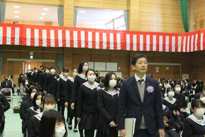 今日から3月、1日は全ての県立高校で卒業式が行われます。本校も第75回卒業証書授与式を厳粛に挙行することができました。今年は3年ぶりに県議会を始め学校運営協議会の委員の皆様方をご来賓として迎えし、式を行いました。この卒業生は入学直後から2ヶ月間の休校を余儀なくされ、新型コロナウイルス感染症に翻弄された3年間であり、やっと収束の兆しが見えた中での卒業となりました。