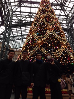 皆でサングラス!! 監督と部員で仲良く☆ クリスマスツリーと☆