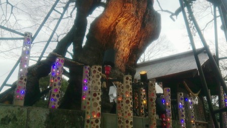 菊池市民の御神木である大椋「将軍木」もライトアップにより普段と違う様子を見せています。