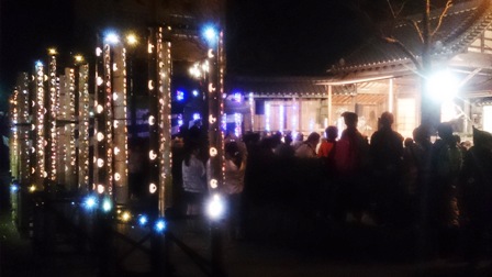能場を中心に舞台づくりがなされ、周辺を竹灯りで演出します。