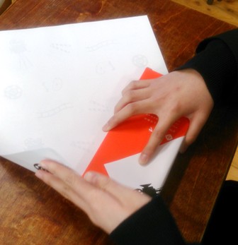 2年5組の迫さんです。 映画祭関連商品を袋詰めしました。