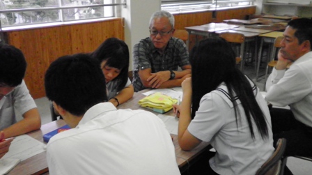 地域の方に授業を一緒に受けてもらいました。生徒と大人が一つのグループになって学びました。