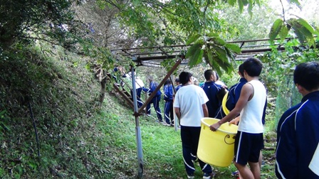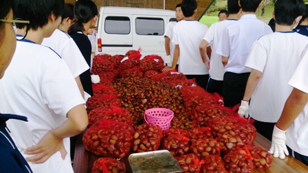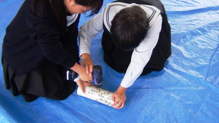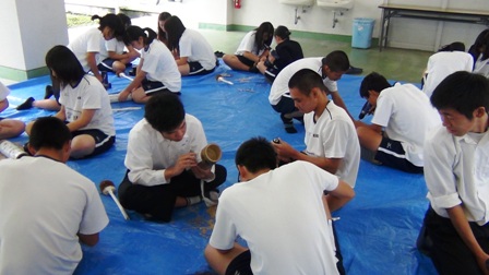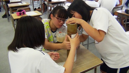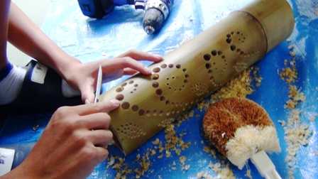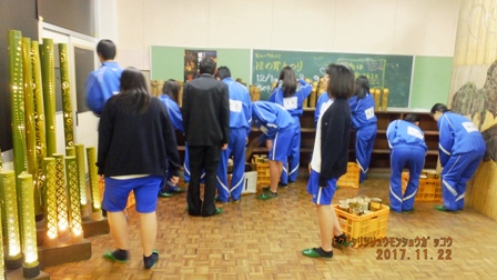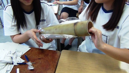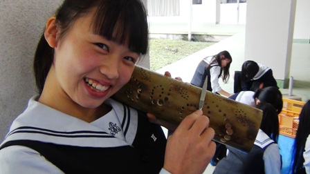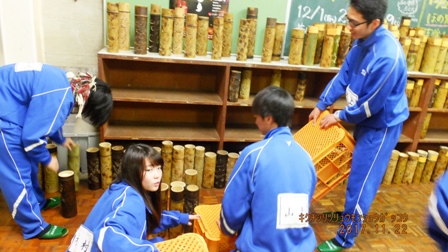 それに合わせて、商業科の生徒たちが竹灯篭を作ります。