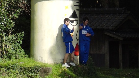 龍門小学校跡地がアート会場になっています。児童の靴箱がそのまま使われています。