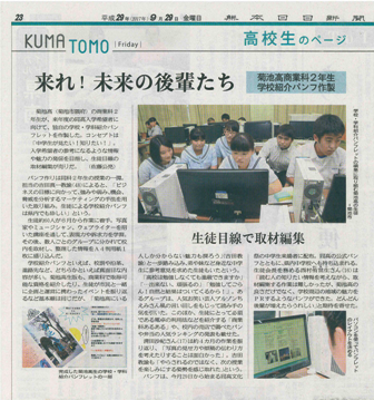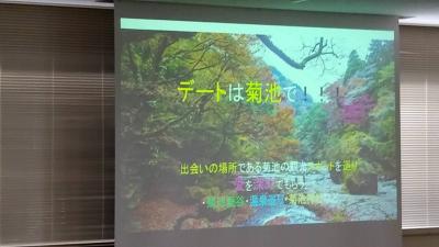 発表テーマは、『「菊池高校 愛物語」 第1章 ふれあいを大切に地域活性化を目指して』です。