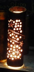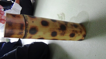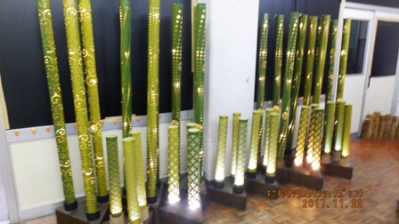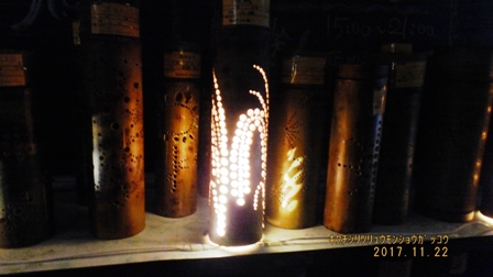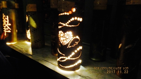 1年生と2年生が一人1本制作した竹灯籠を教室に展示しました。