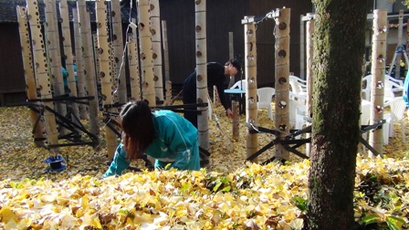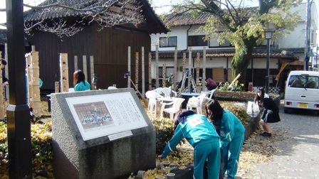 11月18日 ほの宵まつり初日に向けて竹灯籠を配置します。