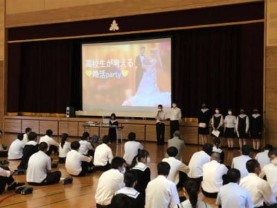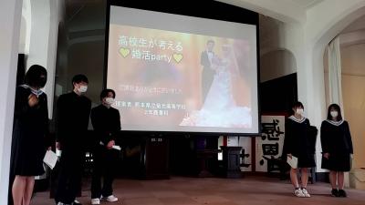 昨年度の取組のメインは全国初の高校生による「スクール婚活」であり、6名のカップル誕生と、1組のカップルが結婚されるという、幸せになる瞬間に立ち会うことができ、心温まる行事となりました。子どもたちのハロウィンパーティーや販売実習においても多くの子どもたちや地域の方々が来校され、地域に元気を与えることができました。