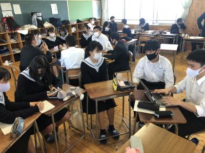 商業科の3年生は、これまで、プレゼンテーションについての知識や技術も身に付けており、作成している資料は大変すばらしいものでした。