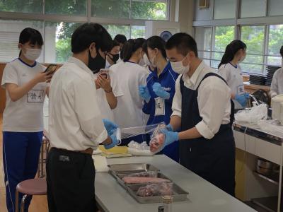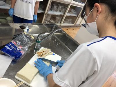 商業科3年の商品開発担当の生徒たちが、「菊高ジャック」の菊高ショップで販売する商品を開発しており、本日、第1回試食会を実施しました。