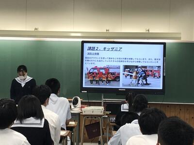 本日、3年生の「課題研究」の授業において、10月に実施いたしました「菊高ジャック」の企画・運営について、各自の取組についての発表会が実施されました。
