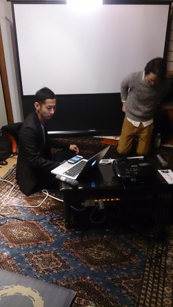 発表者の事前打ち合わせ会議です。萩尾君高揚しています。