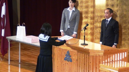 菊朋会(同窓会)表彰「成績優秀模範生徒表彰」