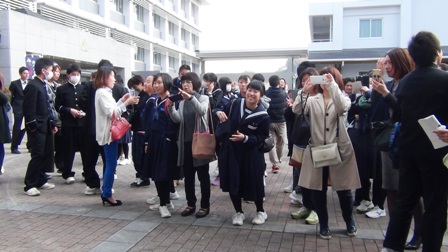 掲示されると一斉に受験生が集まってきます。 喜びの様子です。