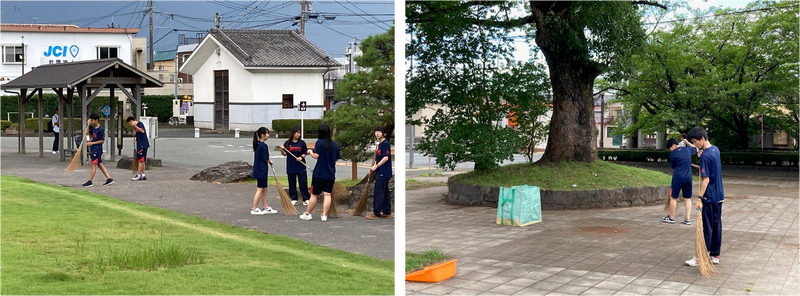 本来は7月4日(木)の午後に予定していた活動でしたが、猛暑のため延期となっていたものです。当日は曇り空で風も穏やか、清掃には最適のコンディションとなりました。さらに、前日の雨で地面が適度に湿っていたこともあり、埃が舞うことなく、隅々まで丁寧に清掃を行うことができました。