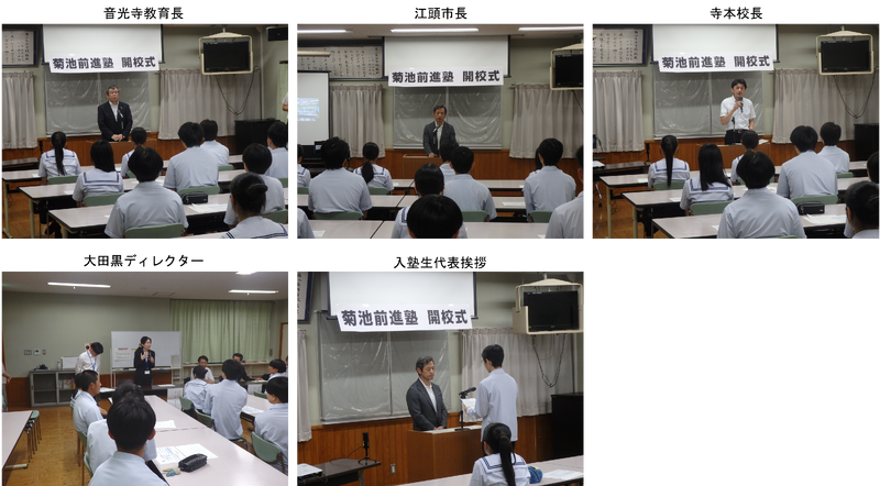 7月17日(木)、菊池市が運営する学習支援塾「前進塾」の開塾式が行われ、本校の生徒たちが参加しました。