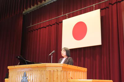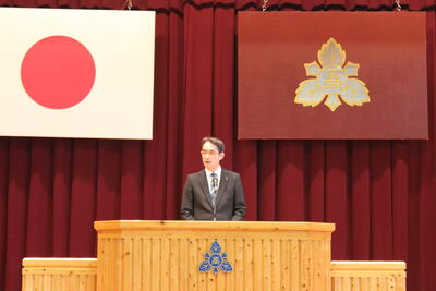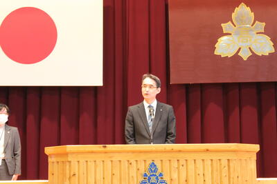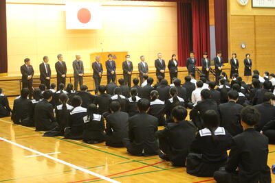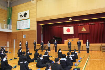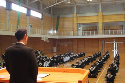 「1年間の目標を決めましたか? また、3学期は3年生は卒業、1・2年生は次年度に向けての準備期間となります。だからこそ今、自分がいる場所がかけがえのない場所であることを感じながら、今を意識し、一緒にいる人達と気持ちを共有し、相手を思いやる生活を送ってください。」