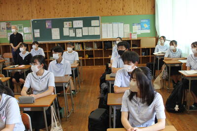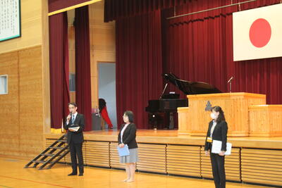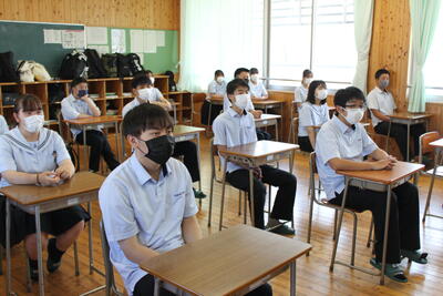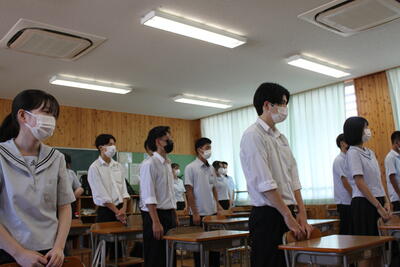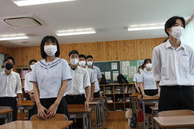 新型コロナウイルス感染症拡大に伴い、校内放送での実施となりました。