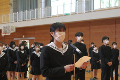 奥園校長先生からは、まだまだ間に合うので「一歩踏み出す勇気」を持って行動して欲しいということや、次年度への準備となる重要な学期となるため、新型コロナウィルスへの基本的な感染防止対策を講じて学校生活を有意義なものにして欲しいと話していただきました。