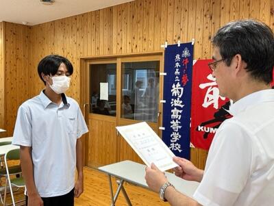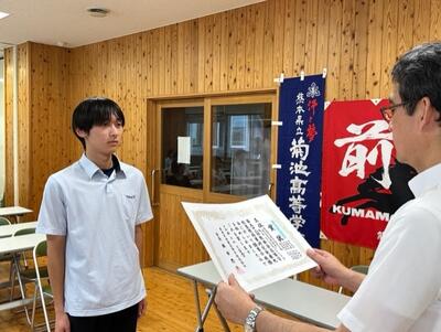 ※鹿本高校戦でのホームランを表彰されました。