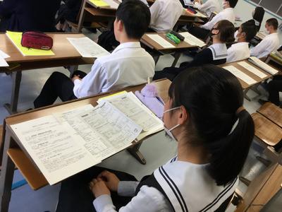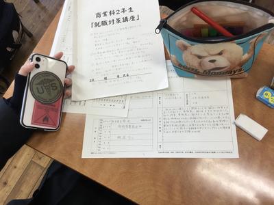 1・2限目は、昨日「履歴書」の下書きが終わり、清書に入っています。昨日、放課後に残って書き終えた生徒もいました。