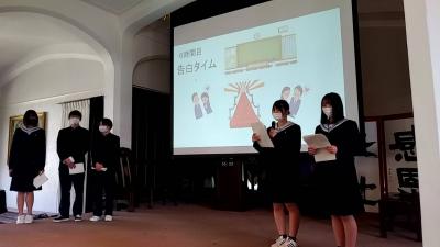 発表の内容としましては、場所を大人の方が懐かしく感じる学校に設定し、自己紹介や家庭科での調理、食事や昼休み、体育でのドッジボール等を通してコミュニケーションを取りながら婚活をするというユニークな内容です。