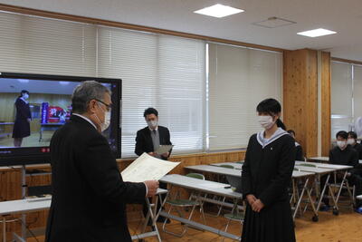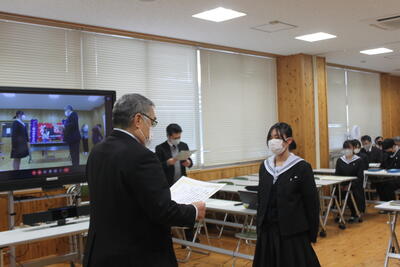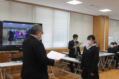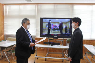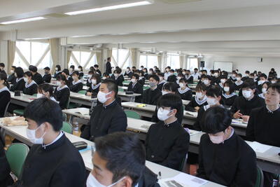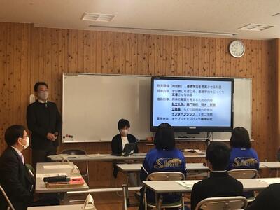 校長あいさつ→学校動画の視聴→学校説明→進路実現に向けた取組等説明→入学選抜に関する説明の順で行いました。