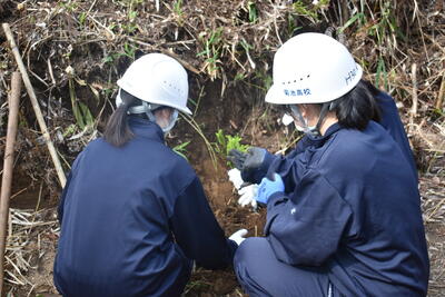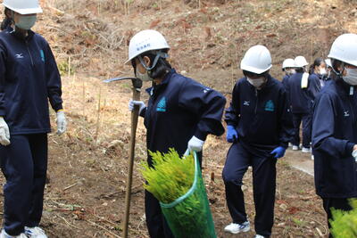 本校は育友会林を所有しており、毎年、生徒たちが同窓会や地域の方々の協力を経て、育友会林の整備・管理を行っています。