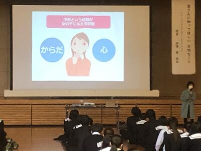 望まない妊娠、中絶、女性の生理について、更に、女性が社会進出(働く)する上で必要な知識、デートDV等についてわかりやすく話してくださいました。