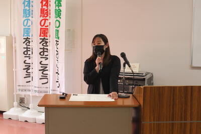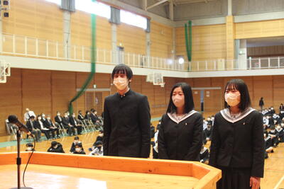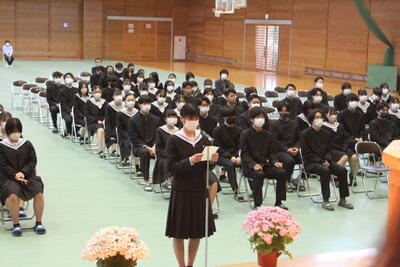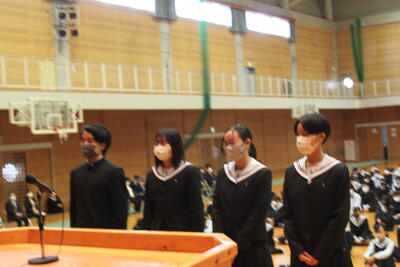 生徒会長 迫美優さん からは、「普段できない体験を皆と一緒にすることでたくさん の思い出をつくります」と決意表明がありました。
