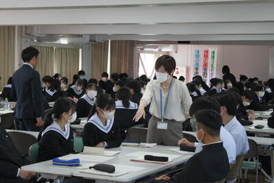 参加したのは、1年生地域探求コースと商業科の生徒たちです。