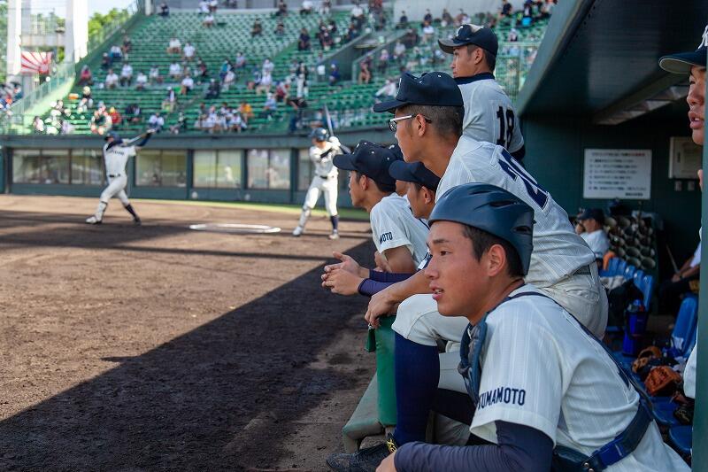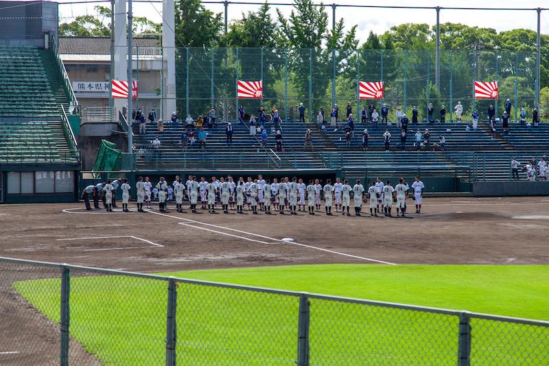 最近、野球部の話題が多いですよ。バランスが悪いのではないですか?というような声も聞かれますが、ご容赦いただき、今日も野球部の大会観戦記を書かせていただきます。26日(土)の1回戦、好投手を要する南稜高校に延長戦の末勝利し、勢いに乗る本校の2回戦の相手はお隣の鹿本高校でした。