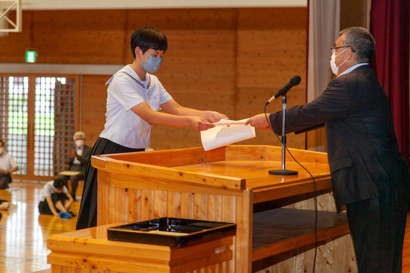 私は学校運営上、生徒自治は非常に重要なことであると考えています。本校がさらにすばらしい学校へと飛躍していくためには先生方がリードするのではなく、生徒自らが学校の課題を見つけ、認識し、その解決のための方法を考え、実行していく、まさしく生徒自治を実現しなければならないと思っています。