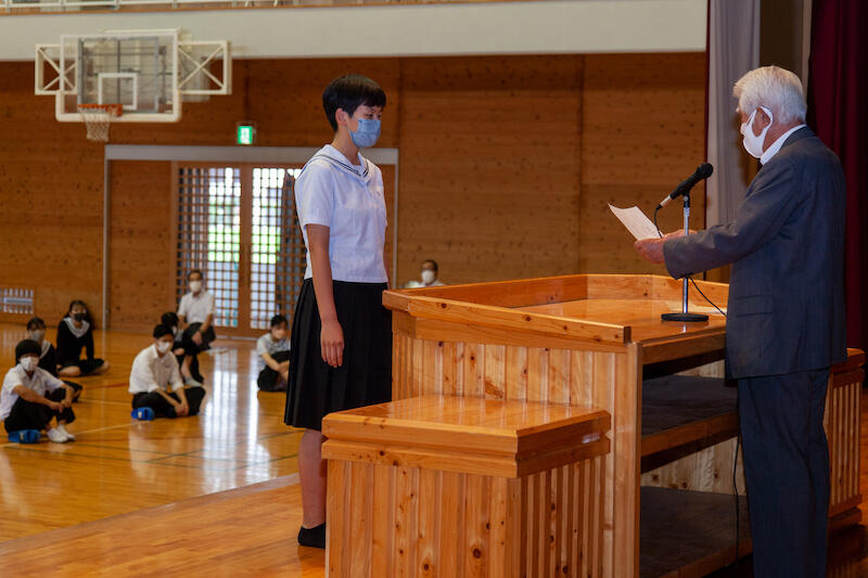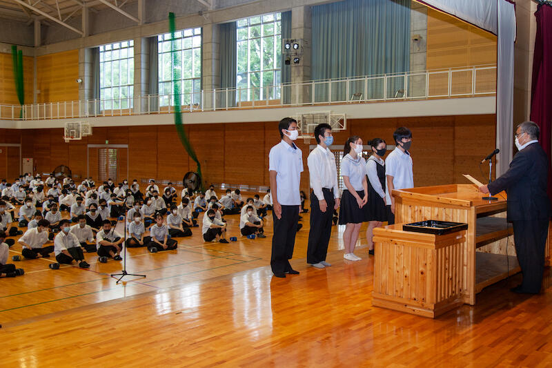まずは立候補してくれた4名の生徒の勇気と行動力に対し心から敬意を表するとともに、心から感謝したいと思います。どの候補者もしっかり立候補した理由や学校の課題、当選したらやりたいと思っていることなどを堂々と発表してくれました。また、体育館の中は蒸し暑い状況ではありましたが、立候補者や応援者の演説を聞く態度の素晴らしさにも感心し、うれしく思いました。