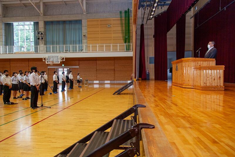 始業式ではこれまでスポーツに携わってきた身として、東京オリンピック・パラリンピックに関する感想を話しをしました。一つ目は選手たちから出てくる支えてくれた人々への「感謝の言葉」の素晴らしさ、二つ目は進化し続ける競技種目の面白さと障害を持つアスリートの生き生きとした姿、「多様性の尊重」多様性を認め、リスペクトすることの大切さ、についてです。これらのことについて生徒たちが今後の人生において少しでも考えるきっかけになれば幸いです。