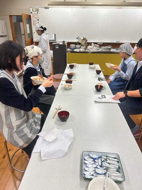 試食の時間は緊張と期待が入り混じる瞬間でしたが、どちらの料理も1回目の試作ながら美味しくできあがり、盛り上がっていました。また、まちづくり部以外の生徒や先生方にも試食してもらい講評をいただいたことで、次回への改善点や新たなアイデアが沢山出てきました。
