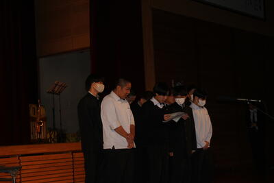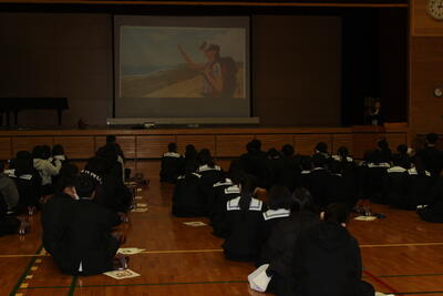 「1年間の目標を決めましたか? また、3学期は3年生は卒業、1・2年生は次年度に向けての準備期間となります。だからこそ今、自分がいる場所がかけがえのない場所であることを感じながら、今を意識し、一緒にいる人達と気持ちを共有し、相手を思いやる生活を送ってください。」