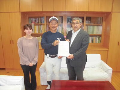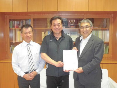 その任用通知書が県教育委員会から届きましたので、本日、女子バレーボール部の東英一さん、野球部の渡邉和雄さん、ボクシングの西垣健三郎さんの3人に交付をしました。その他にもボート部とバドミントン部に指導員の配置を予定しています。
