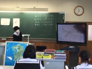 授業は熊本地震のデータとこれまで学習してきたことを関連させながら、地震のメカニズムを考える授業でした。個人の考えをグループで深め、発表するというアクティブラーニングの手法をとった授業展開で、生徒たちが主体的に活動し、考えを深める素晴らしい授業でした。